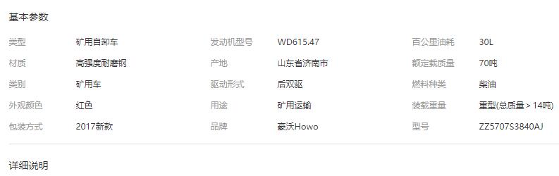 HOWO豪沃70礦車配置價格: