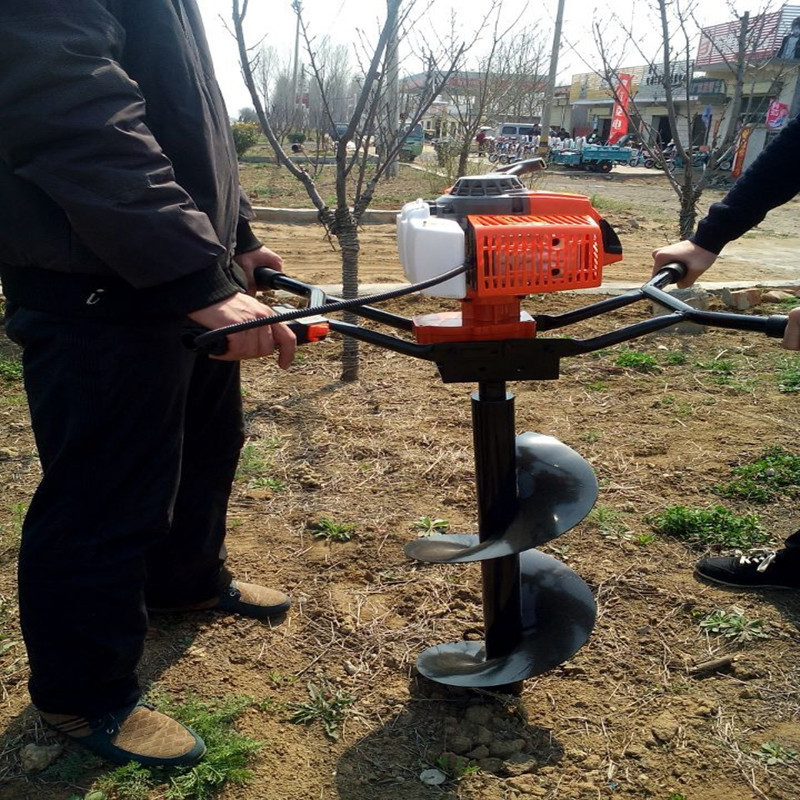 本機器由小型通用汽油機,超越離合器,高減速比傳動箱及特殊設計的鉆具組成適合于<20度以下的坡地、沙地、硬質土地的植樹造林或果樹種植,道路兩側綠化植樹等。苗木種植挖穴,畜牧圍欄埋樁挖穴;葡萄胡椒種植埋樁挖穴;果樹、林木施肥挖穴。鉆頭直徑(mm):80 100 150 200 250 300 400mm