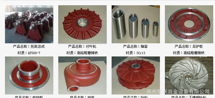 鄭州聯(lián)興冶金設(shè)備有限公司·鄭州聯(lián)興工業(yè)泵廠生產(chǎn)供應(yīng)各種規(guī)格型號(hào)選煤選礦渣漿泵過(guò)流易損件: