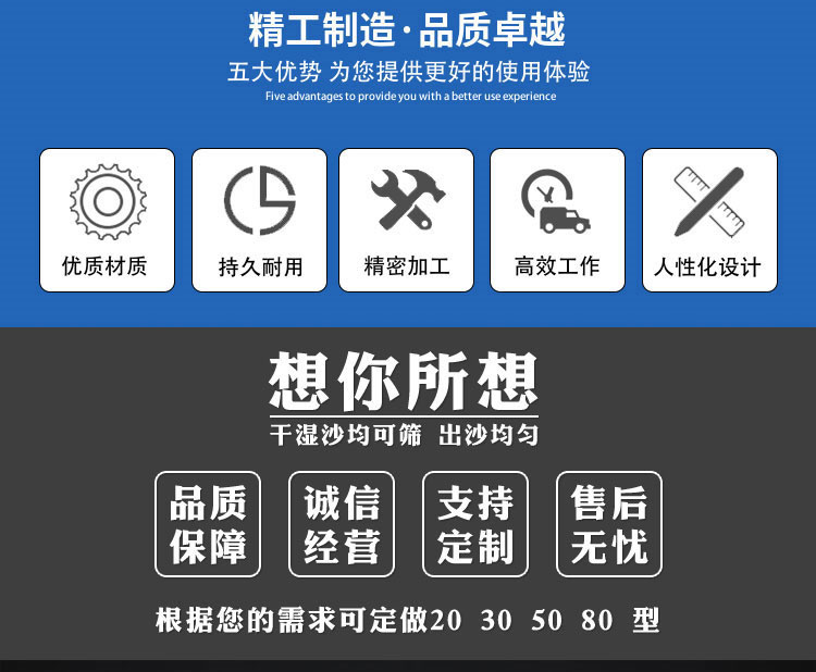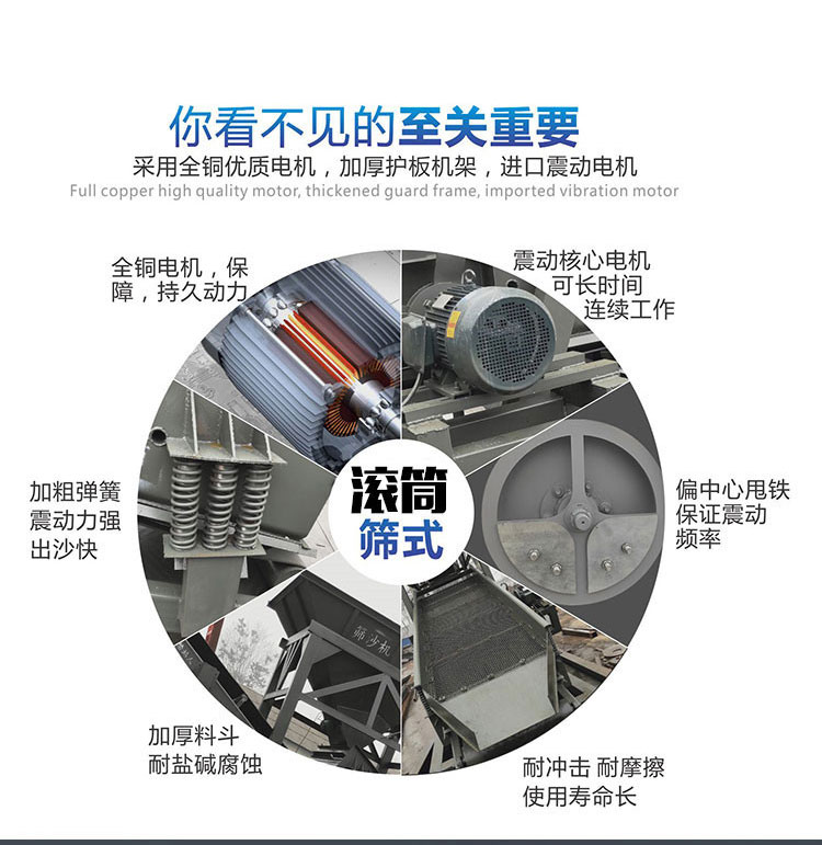 5、工作性能可靠:核心篩分系統采用攪拌機的攪拌原理,原料在攪拌筒內受連續螺旋葉片翻滾、推擠及物料間相互磨擦作用,作用強烈而且可靠性高。