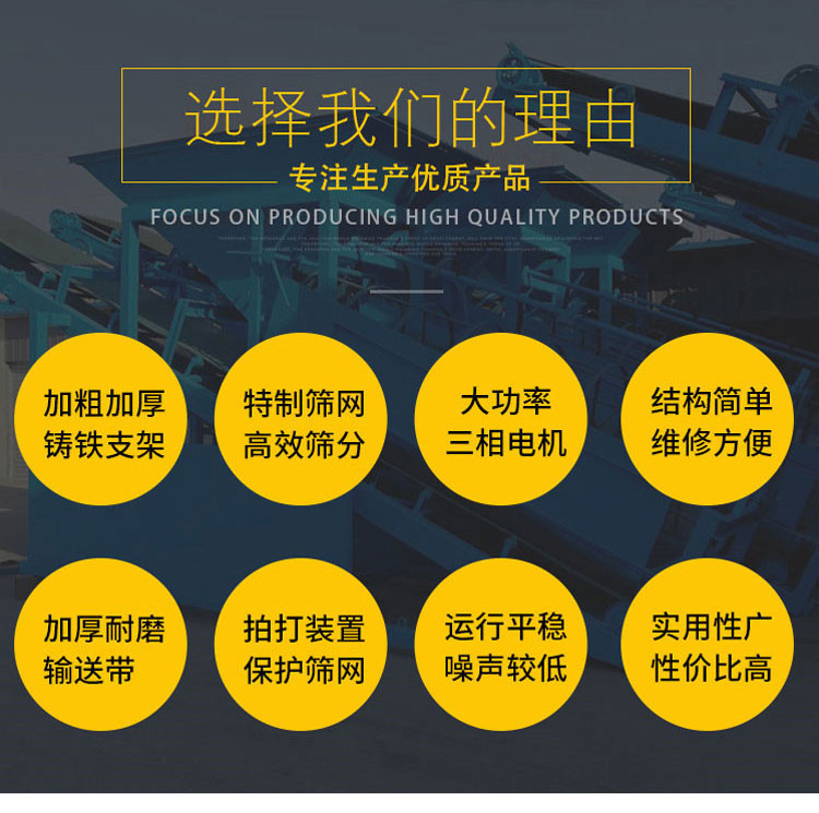 宇歐機械專業生產50型移動式篩沙機,其具有操作靈活、質量可靠、經久耐用,結構緊湊、簡單、占地少,成本低、效率高、移動、維護方便等特點,并根據多年生產經驗及用戶反饋信息,不斷的對篩沙機進行完善改進,使本機工作效率更高,穩定性更好,在料倉處加入了伸縮式送料裝置使各種沙子都能正常的篩分,備有大、中、小各種型號,及建筑工地專用小型篩沙機。廣泛用于攪拌站,路橋工程、建筑工地、采沙場及沙石料場。是您節省人力、財力,提高工程質量,加快工程進度,增加經濟效益的理想設備