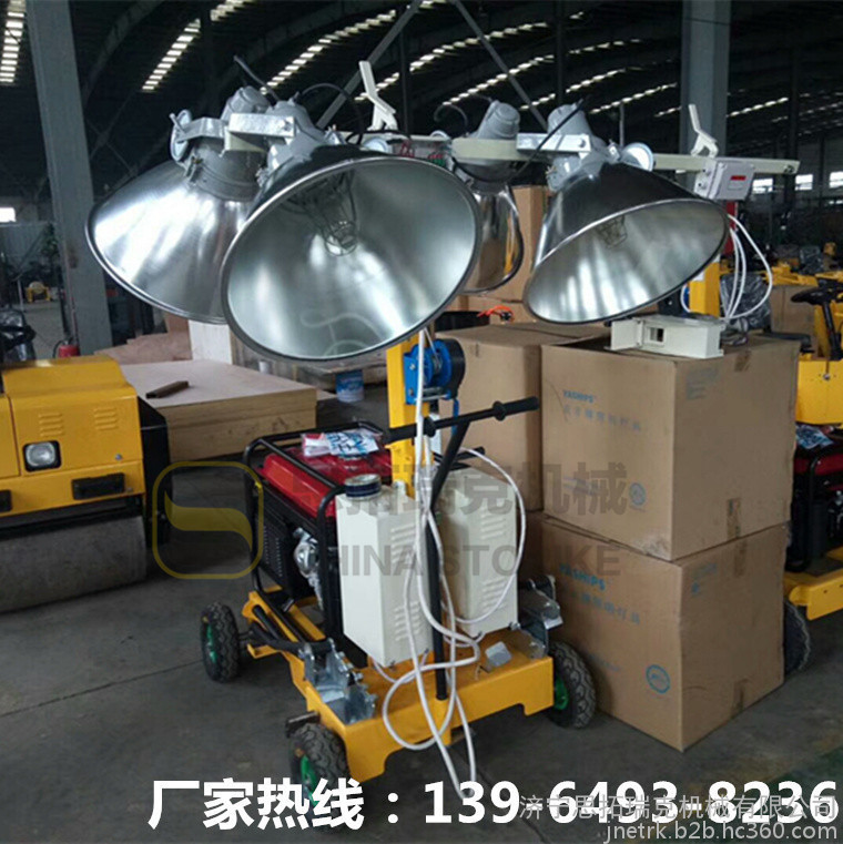 操作方便:燈具由燈架(包括燈盤,伸縮桿)和發電機座(包括發電機組,電器箱,發電機底座),上下兩部分組成,輕便并易于組合、拆卸和搬運,操作簡單,適用性強.發電機底座上安裝萬向輪可在坑洼的路面上運行.