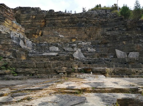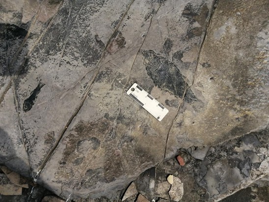 當(dāng)天下午,記者隨成都地調(diào)中心的專家們參觀了館藏于羅平縣自然資源局大院內(nèi)的數(shù)千塊精美的化石標(biāo)本。下午3點(diǎn)左右,記者跟隨專家們到化石采集3號采場,這個(gè)巨大層狀結(jié)構(gòu)的巖層采場,腳下隨便一踩,都能踩住生物化石,各種各樣的化石隨處可見,地質(zhì)錘隨便一敲,都能敲出一塊生物化石來。這里簡直是一本巨大的生物化石教科書。隨后我們又趕到首次發(fā)現(xiàn)龍魚化石的1號采場,在那里又找到了幾塊化石標(biāo)本。