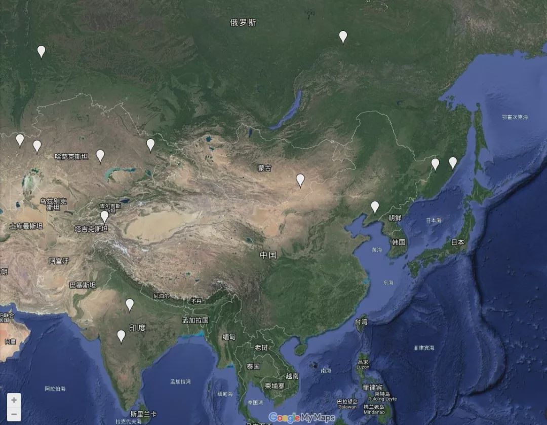 中國及周邊已經(jīng)發(fā)現(xiàn)的部分隕石坑位置