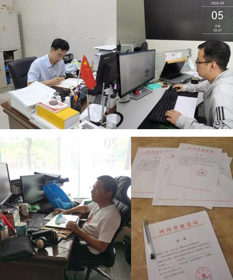 本次地震發生于成都疫情形勢嚴峻之時,此前青高所除有4名工作人員在崗值守外,其余同志按要求處于居家辦公狀態。地震發生后,剛結束連續4天24小時在崗值守的吳微微副所長迅速響應,“請小區未封控的同事全員到崗”,并立即安排在崗值守的同志產出應急產品、參與首次會商。辦公室黃雪影、褚然立刻為居家辦公同志辦理工作證明,確保未在封控區的同志能順利到達單位應急。震后一小時內,青高所22名同志到崗,1名同志在西昌中心站參與應急處置工作,另有3名同志奔赴現場一線。