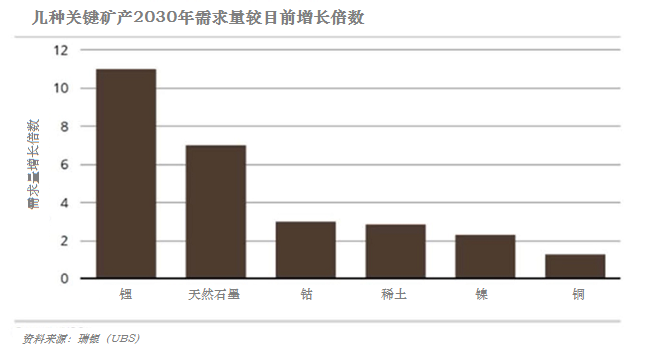 IEA則將預測期延長了10年,2040年清潔能源技術對部分礦產的需求量較2020年增幅為:鋰13~42倍,石墨8~25倍,鈷6~21倍,鎳7~19倍,錳3~8倍,稀土3~7倍,銅2~3倍。