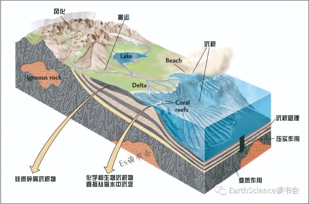 沉積巖是地殼淺層的物質(zhì)經(jīng)搬運(yùn)作用、沉積作用和成巖作用形成,沉積巖具有明顯的層狀結(jié)構(gòu)且軟弱夾層發(fā)育,因此,沉積巖的工程性質(zhì)相對(duì)較差,坡體穩(wěn)定性相對(duì)較差。沉積巖多在水動(dòng)力環(huán)境中沉積形成,故又名水成巖。依據(jù)物質(zhì)來(lái)源、搬運(yùn)動(dòng)力和沉積環(huán)境,可分為碎屑沉積巖和化學(xué)沉積巖兩大類。