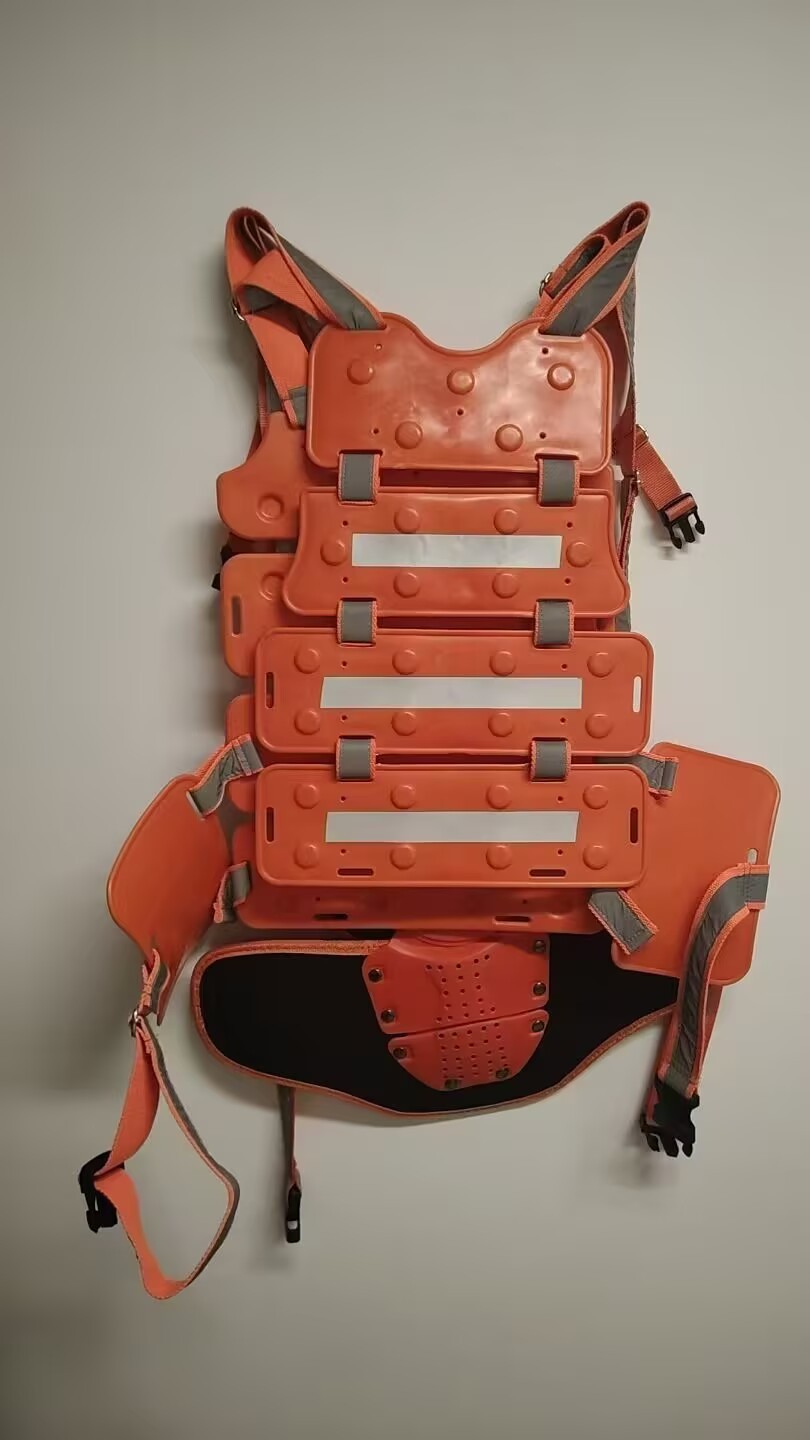 礦用防撞背夾,也稱為安全背夾,是一種專為礦山、隧道開采和井下作業等高風險環境設計的防護裝備。它的主要作用是防止外來物撞擊人體腰部、背部和脊柱,減少重大傷亡事故的發生。礦用防撞背夾通常由四節結實的復合膠木板或其他輕質高強度材料連接而成,形成一個能夠貼合人體背部的防護結構。這種背夾不僅能夠提供強大的防護性能,還具有較高的舒適度,背甲自重較輕,且膠木板塊塊相連可隨背部彎曲而活動,與背部接觸處還設有多個泡沫塊,不會給作業人員造成額外負擔和不適感。此外,部分安全背夾還加貼了反光條,能夠在昏暗的燈光下提高作業人員的可見性,進一步保障其安全。