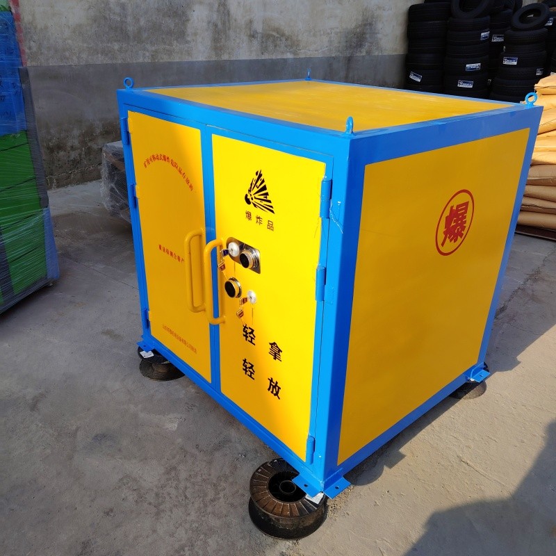 車廂部分:通常采用 6-8mm 厚的防爆鋼板制成,具有高強度和抗沖擊性能,能有效防止爆炸沖擊波和碎片的擴散。內部鋪設 10mm 厚的絕緣木板及 2mm 厚的防火防震防靜       電的阻燃墊,可起到緩沖、隔熱、防靜電的作用,確保爆破物品的安全存放。