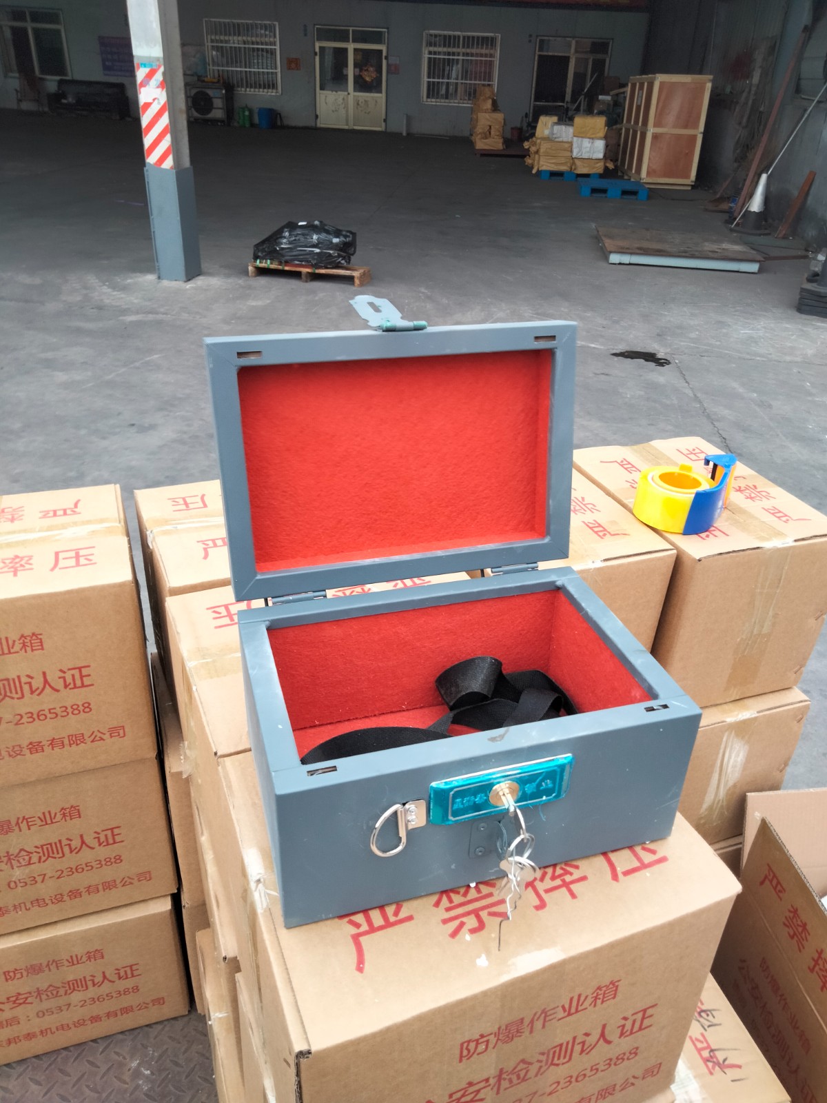 山東邦泰集團(tuán)所生產(chǎn)銷售的鋼板材質(zhì)保管箱可依照其功能存放危險(xiǎn)物品。該產(chǎn)品箱體外置1.0mm厚防爆鋼板,內(nèi)置7mm厚防靜電木板及1.0mm厚防靜電阻燃?xì)帧?防爆箱鎖具配有三位防盜機(jī)械密碼鎖與兩個(gè)不銹鋼明鎖扣,是標(biāo)準(zhǔn)雙鎖配置,符合公安檢驗(yàn)標(biāo)準(zhǔn)。同時(shí)箱體四角嵌有不銹鋼防撞包角,確保箱體更加堅(jiān)固、抗撞擊。防爆箱配有提手并加裝聚氨酯背帶以便作業(yè)員實(shí)現(xiàn)手提、肩背,便于其更加高效工作。