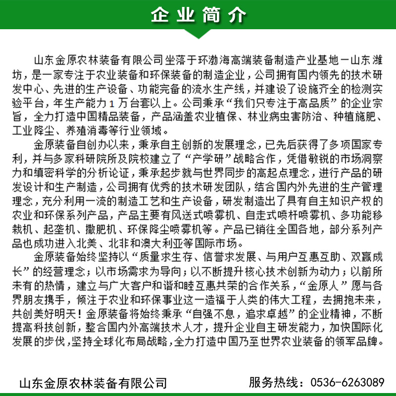 牽引式風(fēng)送彌霧打藥機(jī)匹配于拖拉機(jī)使用,與拖拉機(jī)牽引架連接,PTO傳動(dòng)軸同時(shí)帶動(dòng)噴霧泵和送霧風(fēng)機(jī)工作,采用簡(jiǎn)潔的機(jī)械傳動(dòng),駕駛員輕松獨(dú)立操作。本機(jī)行進(jìn)中,在中壓風(fēng)機(jī)及高壓藥泵的共同作用下,藥液被均勻霧化,霧滴極細(xì),借助超大風(fēng)量而柔和的風(fēng)送氣流,使內(nèi)外層果枝葉正反面快速均勻附著藥液,提高工作效果和效率,節(jié)水節(jié)藥可達(dá)10-55%。在高壓氣流的推動(dòng)下,形成270°的持續(xù)不斷的扇形霧化工作帶,確保果園噴藥后不留死角,每小時(shí)噴灑面積可達(dá)30畝以上,采用寬葉風(fēng)扇,風(fēng)量大而穩(wěn)定,穿透性好且不傷果實(shí)。內(nèi)置高壓射流自動(dòng)攪拌,藥液均勻不沉淀。采用超大容量水箱,連續(xù)長(zhǎng)時(shí)間作業(yè)不間斷。本機(jī)適用于果園快速高效施藥;如蘋果、梨樹、桃樹、柑橘、棗樹、香蕉等。備注:部分產(chǎn)品標(biāo)注價(jià)格是訂金。