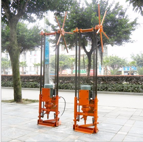 鉆機特點:結構緊湊,體積小,重量輕,兩檔變速,搬移方便,汽油動力,方便野外施工。特別適合地形復雜的山區及車輛無法通行到達的孤僻地帶施工;該機兩檔變速,可根據地質結構進行調整。