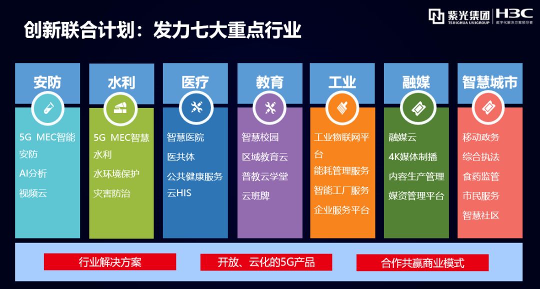 韓志剛介紹,支持行業應用是5G的重要特征,新華三將依托自身在行業的積累和優勢,攜手運營商構建價值合作體系。2019年,新華三將在安防、水利、醫療、教育、工業、融媒和智慧城市七大垂直行業深耕細作,以5G技術為行業數字化升級賦能。