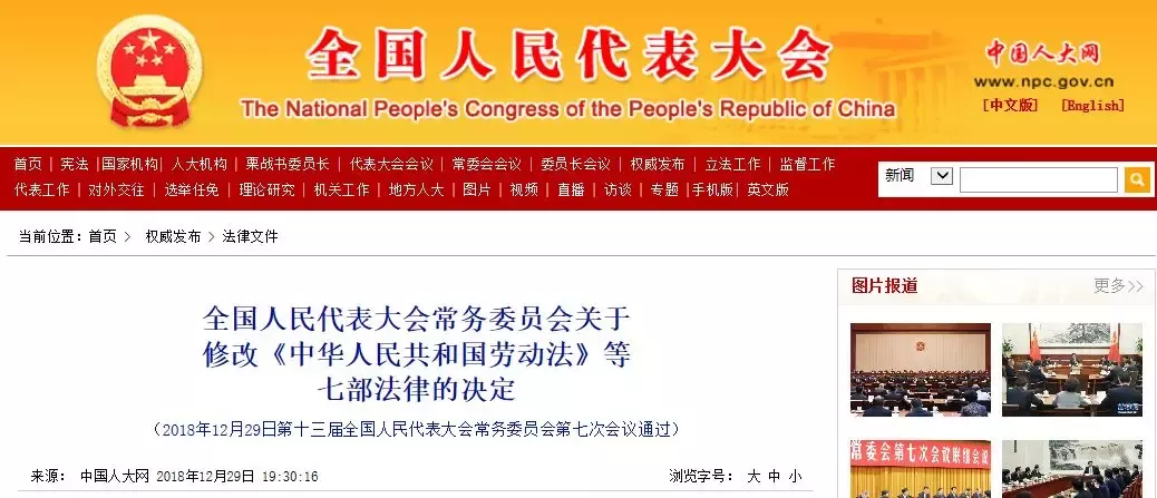 2018年12月29日根據中國人大網消息,第十三屆全國人民代表大會常務委員會第七次會議決定,對《中華人民共和國環境影響評價法》作出修改: