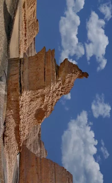 與此同時,南部迅速隆起的青藏高原和西北部的天山擋住了南部印度洋和西部的濕潤的空氣,東邊距離太平洋又太過遙遠(yuǎn),導(dǎo)致這里的氣候越來越干燥,來自蒙古高原的強風(fēng)則自北向南長驅(qū)直入,在強風(fēng)的長期吹蝕和磨蝕作用下,伴隨著間歇性的洪水,羅布荒原中大面積的河湖相沉積物逐漸被瓦解,從而形成今天的雅丹地貌。