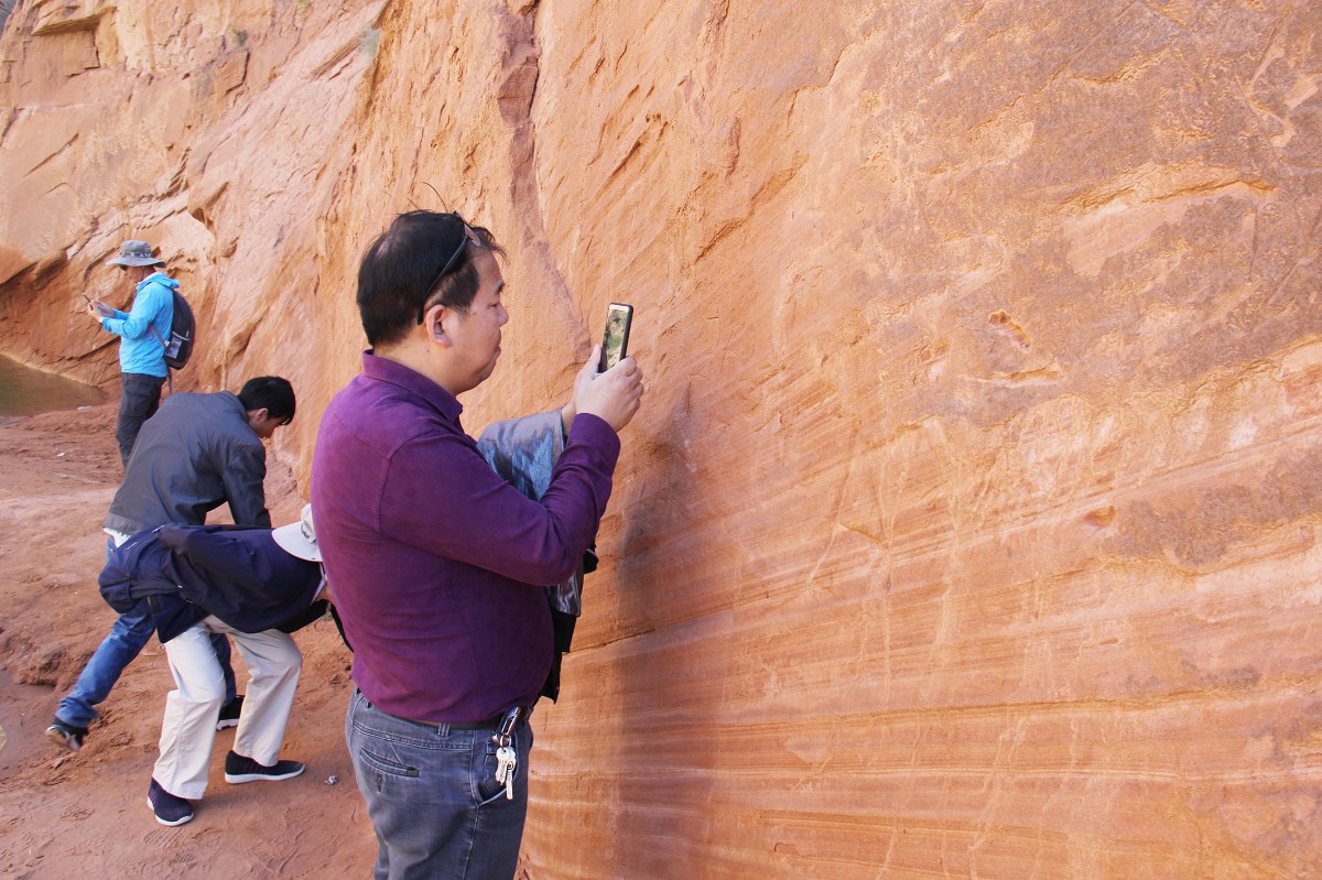 五是積極推動地學科普。每年舉辦一次“一帶一路”國際性地學夏令營活動,旨在普及地學知識,弘揚生態理念。2018年10月,聯合陜西省政協各界書畫院,共同組成“地質與藝術的對話”科考和藝術采風團,對陜北丹霞地貌進行綜合考察。