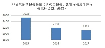 非油氣地質(zhì)報(bào)告數(shù)量(含核實(shí)報(bào)告、勘查報(bào)告和生產(chǎn)報(bào)告三種類型)