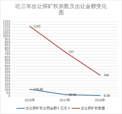 近三年出讓探礦權(quán)宗數(shù)以及出讓金額變化圖