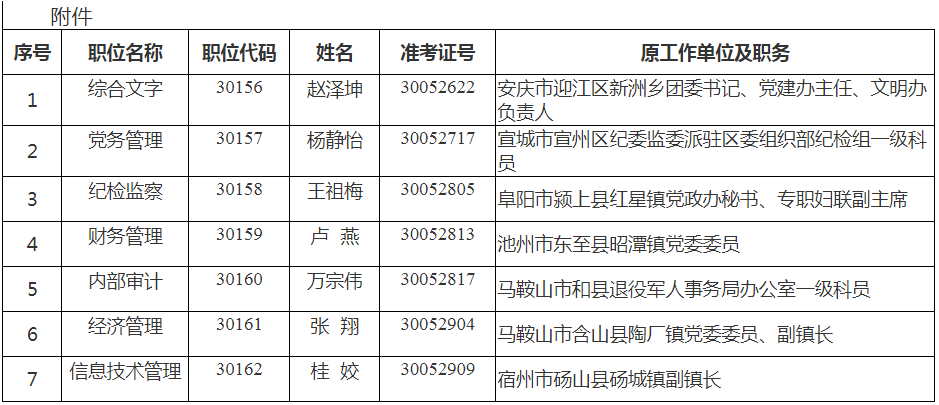根據(jù)《2019年度安徽省省直機關公開遴選公務員工作實施方案》(皖組辦字〔2019〕41號)等規(guī)定,經(jīng)報名、筆試、面試、體檢、考察等程序,經(jīng)研究,確定趙澤坤等7名同志為安徽省地質礦產(chǎn)勘查局擬遴選人員,現(xiàn)予以公示。公示時間:2020年2月28日至3月5日(5個工作日)。如有問題,請于公示期間及時向省委組織部、安徽省地質礦產(chǎn)勘查局反映,監(jiān)督電話:0551-62609724、0551-64666970。