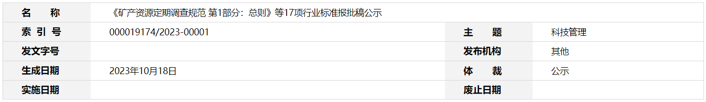 《礦產(chǎn)資源定期調(diào)查規(guī)范 第1部分:總則》等17項(xiàng)行業(yè)標(biāo)準(zhǔn)報(bào)批稿公示