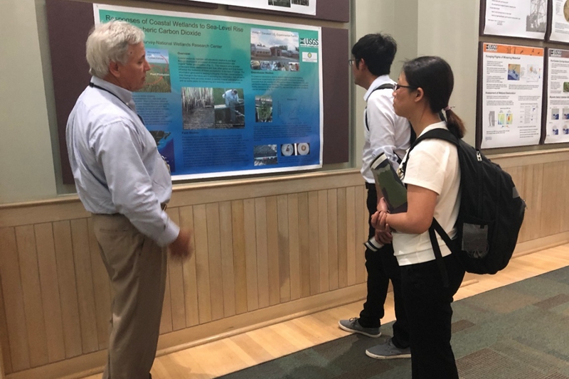 在訪問美國地質調查局濕地與水生研究中心期間,訪問團聽取了該中心副主任Thomas Doyle研究員關于濱海濕地生態地質調查與監測方面的最新進展和工作成果介紹。雙方圍繞海岸帶有機質加積、預測模型建設、碳分解等系列工作進行了交流討論,通過深度交流和學習借鑒,在進一步學術交流、科研合作等方面取得了豐富的成果。