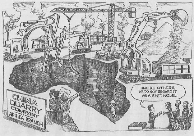 圖1 漫畫:中國公司投資非洲礦山。Kevin KALKallaugher,經濟學人,Kaltoons.com