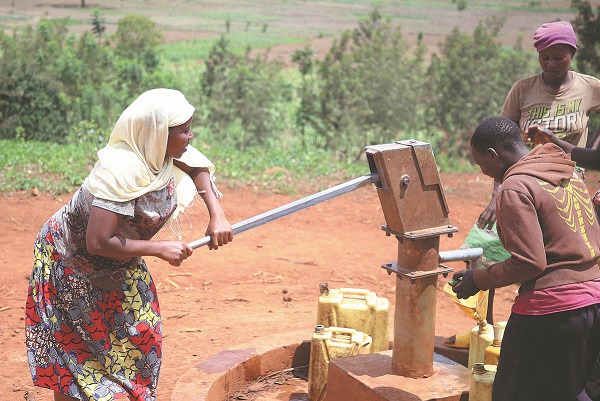 2021年10月14日,盧旺達的一個村莊,村民們使用中國援建的機井取水。圖片來源:新華網