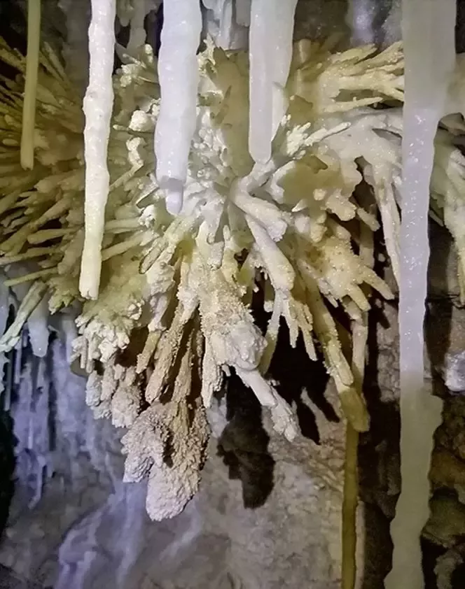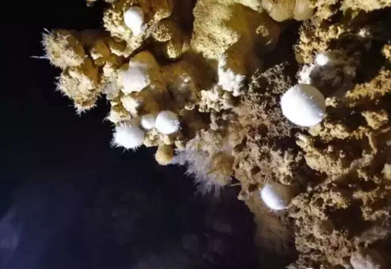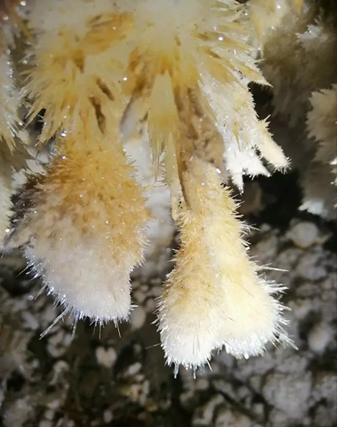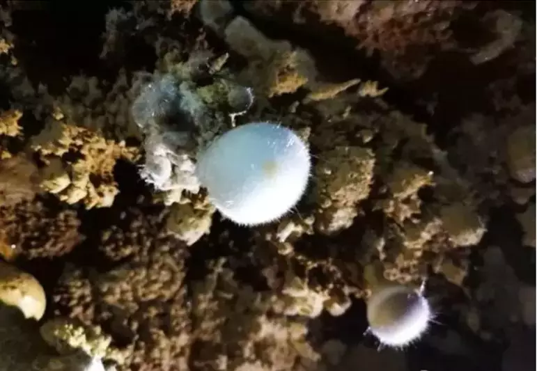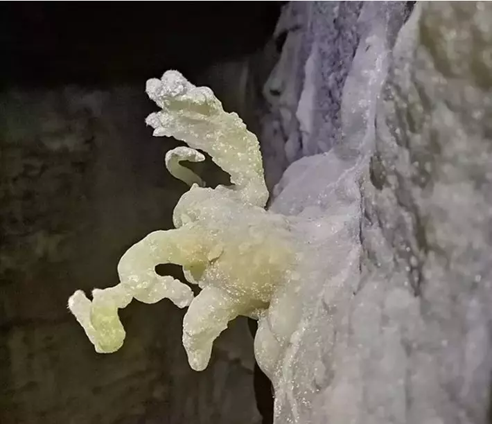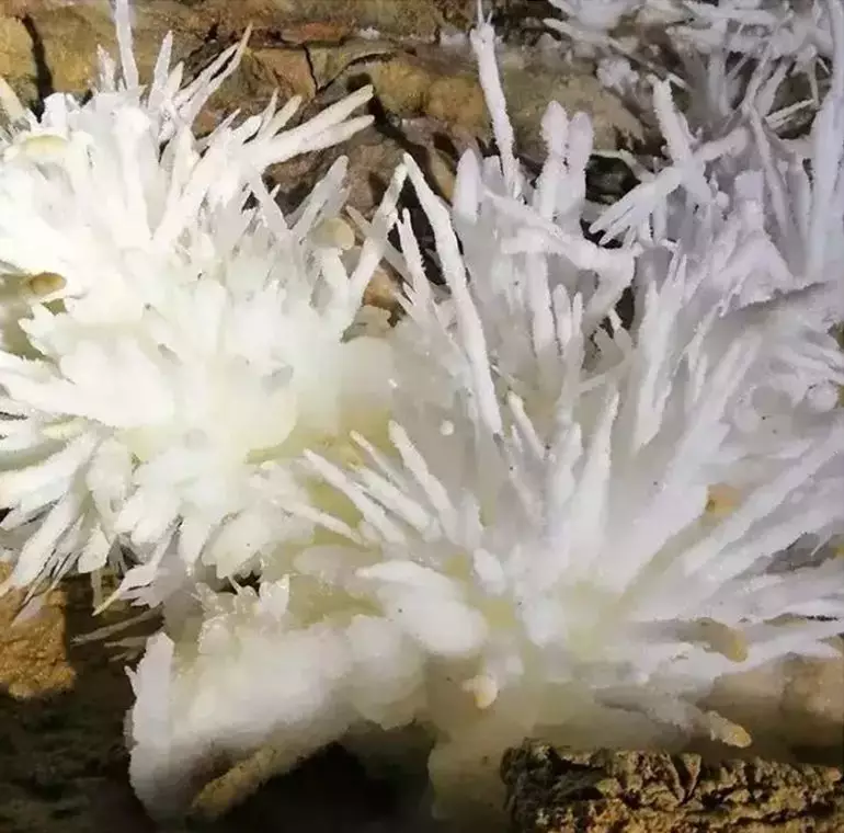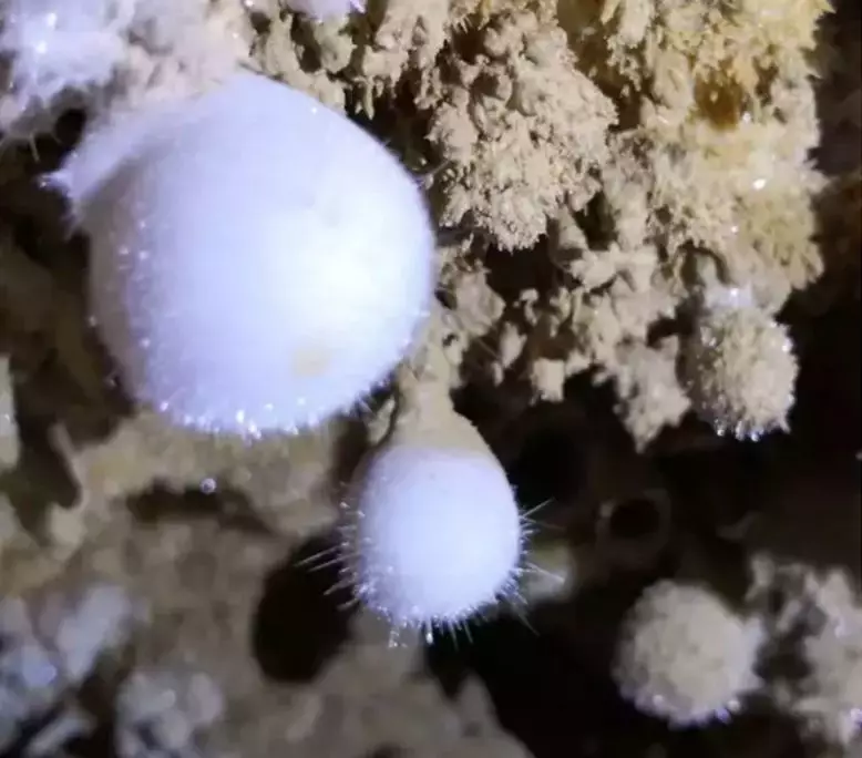 文石貌似絨絨球,鵝管蜿蜒細細圈;