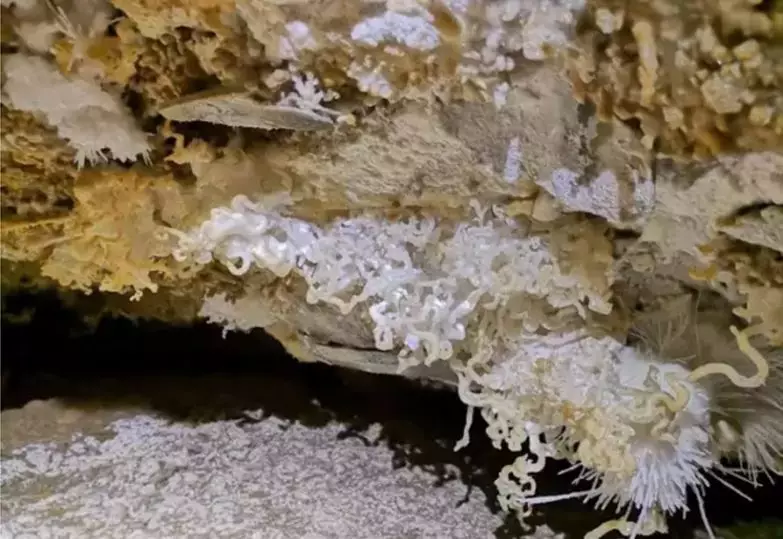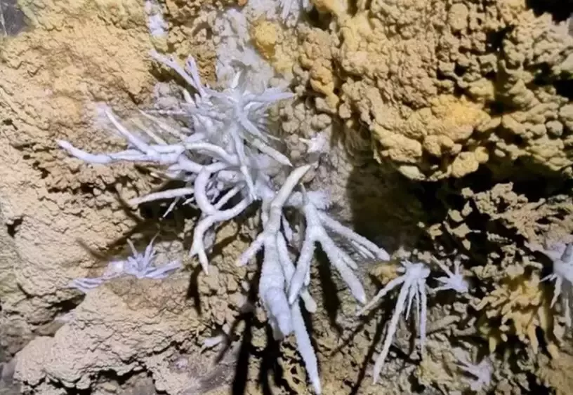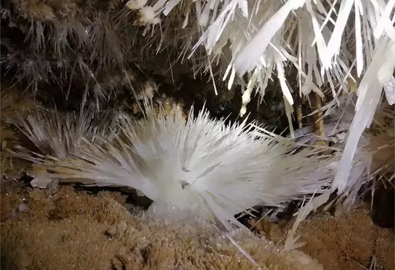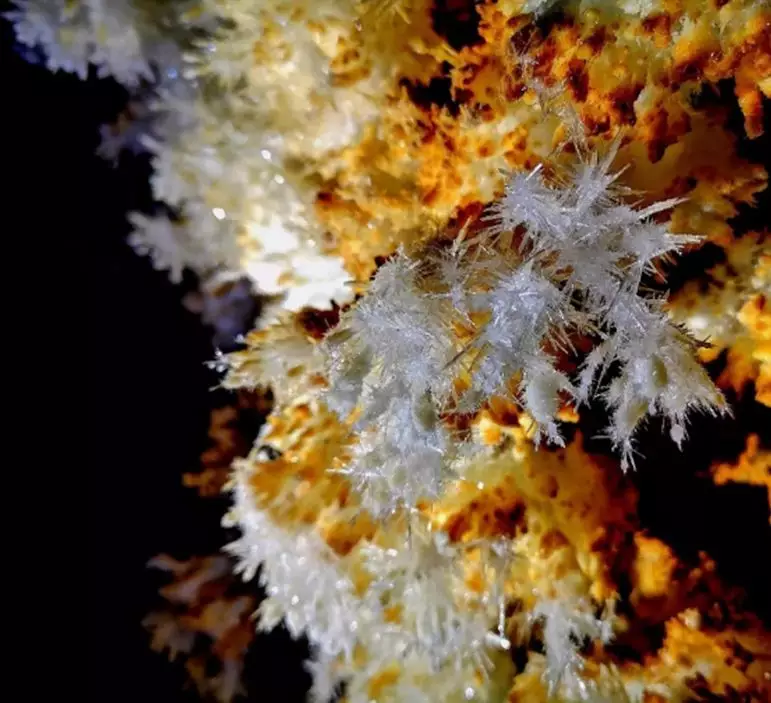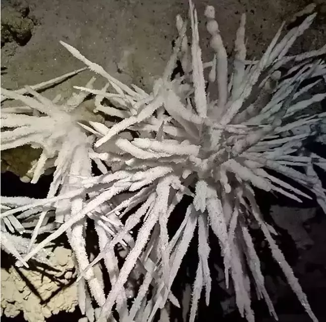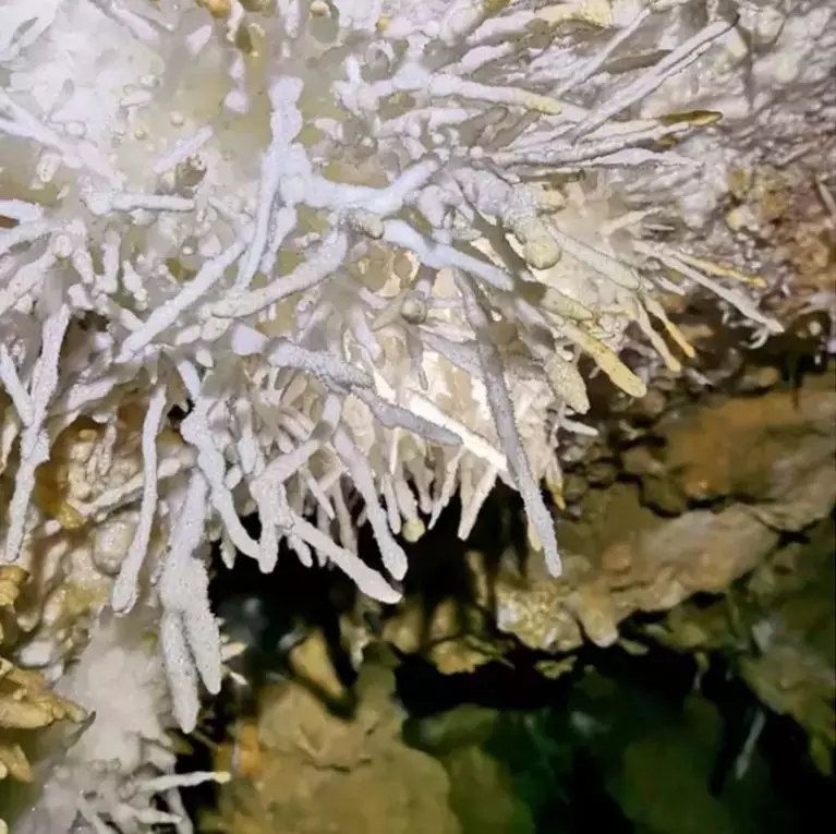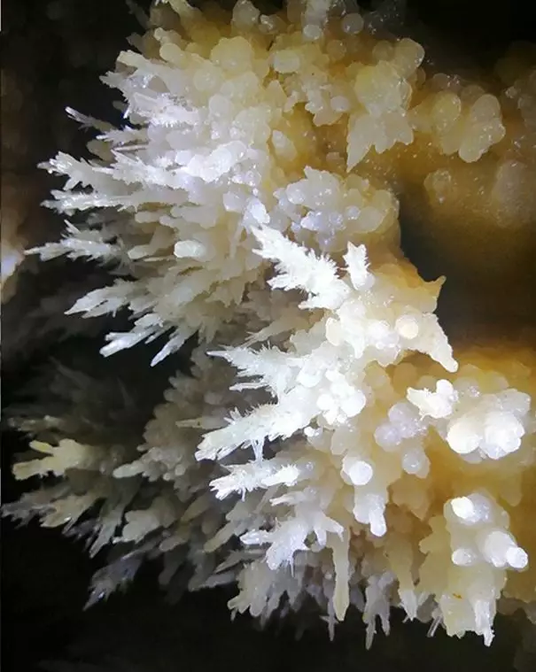 文石貌似絨絨球,鵝管蜿蜒細細圈;