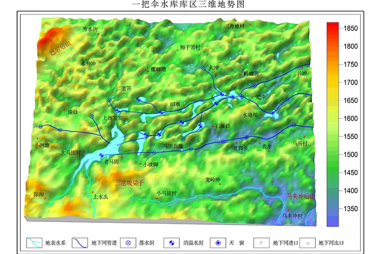 巖溶所依托西南巖溶地區水文地質調查成果,積極推動水文地質調查工作服務巖溶地區水利工程建設,在巖溶水資源高效利用領域實施產學研協同創新。一是通過開展水文地質補充調查,查清了一把傘水庫地下河空間水文地質結構。一把傘地下河擬成庫區由11個洼地構成,地下水自西向東徑流,擬成庫區主要有2條地下河管道貫穿其中,若堵洞成庫成功,可將上游十幾個洼地相連,自然景觀優美,具有重要的旅游價值。二是通過水文地質補充調查和水文地質剖面測量,查清了一把傘地下河成庫條件和地下水系統邊界。三是結合前期鉆孔資料、地下水動態監測資料、示蹤試驗、水文地質剖面和地球物理探測資料,確定了一把傘地下河擬封堵區地下河主通道位置,確定了強巖溶發育帶深度,為下一步堵洞成庫施工提供了地質支撐。