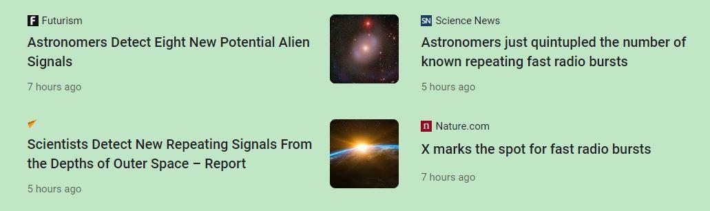 在此次發現之前,科學家已經觀測到了大約75個快速無線電爆發,其中只有3個是重復發生的。第1個已經被廣泛研究;今年早期加拿大氫強度測繪實驗望遠鏡發現了第2個重復信號;在過去的幾周內,澳大利亞平方公里陣列探路者號望遠鏡,發現了第3個重復發生的電波信號。科學家目前發現的重復快速無線電爆發信號總數累計達11個。