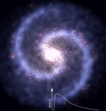 銀河系就是一個旋轉的大盤子,如上圖,可以看見,銀河系中心部分最亮,因為那里的恒星多如恒河沙,換言之,銀河系的大部分質量集中在中央部分。