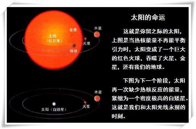 即使如太陽,它的紅巨星時代都有可能吞噬水星,但地球也許不會,因為太陽成為紅巨星后質量大量丟失,地球會脫離原來的軌道而距離太陽更遠,因此可以逃過吞沒的命運,但經歷和氦閃和紅巨星時代的地球,早已死氣沉沉,是否被吞噬,我們并不是特別關心。