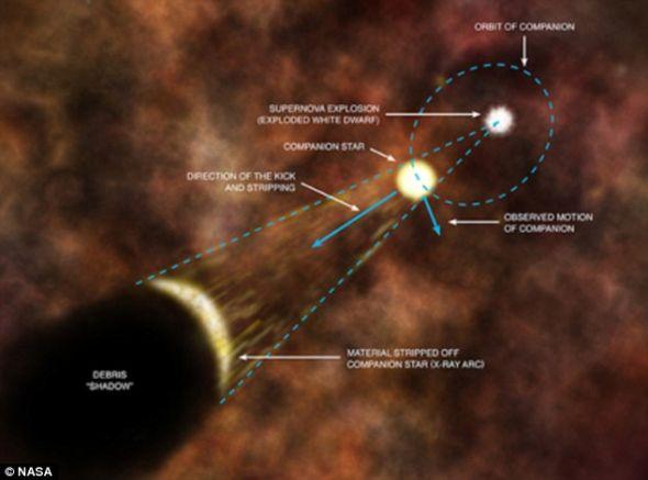 甚至超新星爆發都可能摧毀它的伴星,上圖是第谷Ia型超新星爆發時伴星得以幸存的示意圖,這算是一個比較不錯的結果!超新星爆發都可能摧毀恒星,它星系內的行星就更不在話下了!