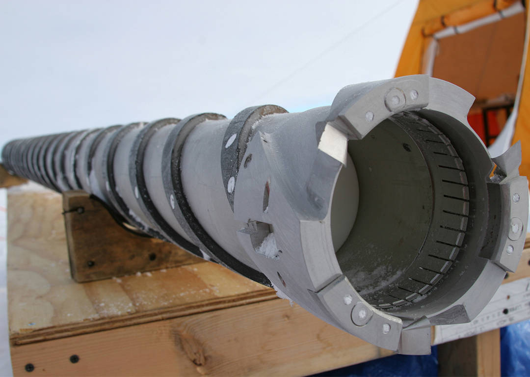 但是這個計劃很快就沒錢了,下一次挖掘就要等到上世紀80年代末了,那次是美國和歐洲的科學家聯(lián)合花了5年的時間,挖得特別深,挖出了兩段3000多米深的冰芯。當然這個冰柱可以采信的時間跨度不是無限長的,比如說南極的冰蓋它是3000萬年前形成的,南極的冰蓋厚度是4000多米深,但是冰層有時候到了最底下的時候會因為壓力產生切向的滑動,就會導致年份的錯位了。所以這冰柱現(xiàn)在最長的可信年份大約是在13萬到15萬年左右。
