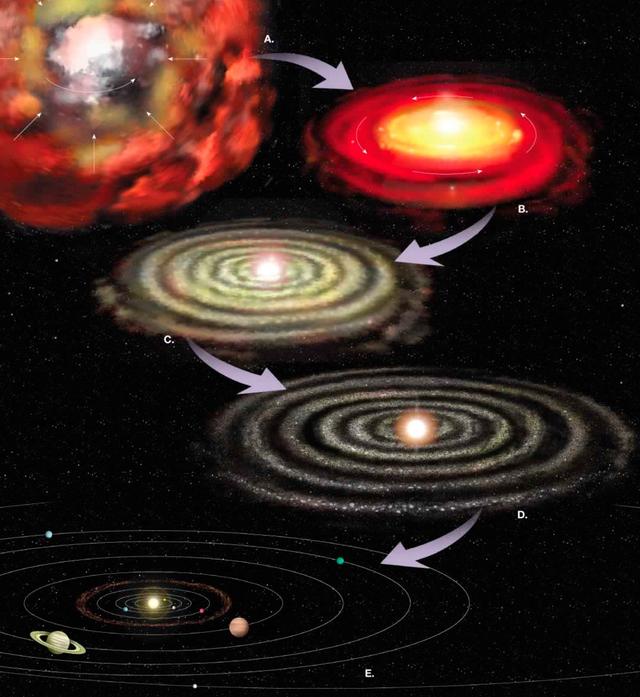 早在1796年,拉普拉斯就在他的《宇宙體系論》中,獨(dú)立提出了關(guān)于太陽系起源的星云加說。可以簡單的概括為:太陽在一團(tuán)收縮的氣體云中形成,而行星則誕生于形成太陽后在黃道面上的邊角料,當(dāng)然原文并沒有那么簡單,下文我們也將簡單介紹下現(xiàn)代恒星形成的過程。