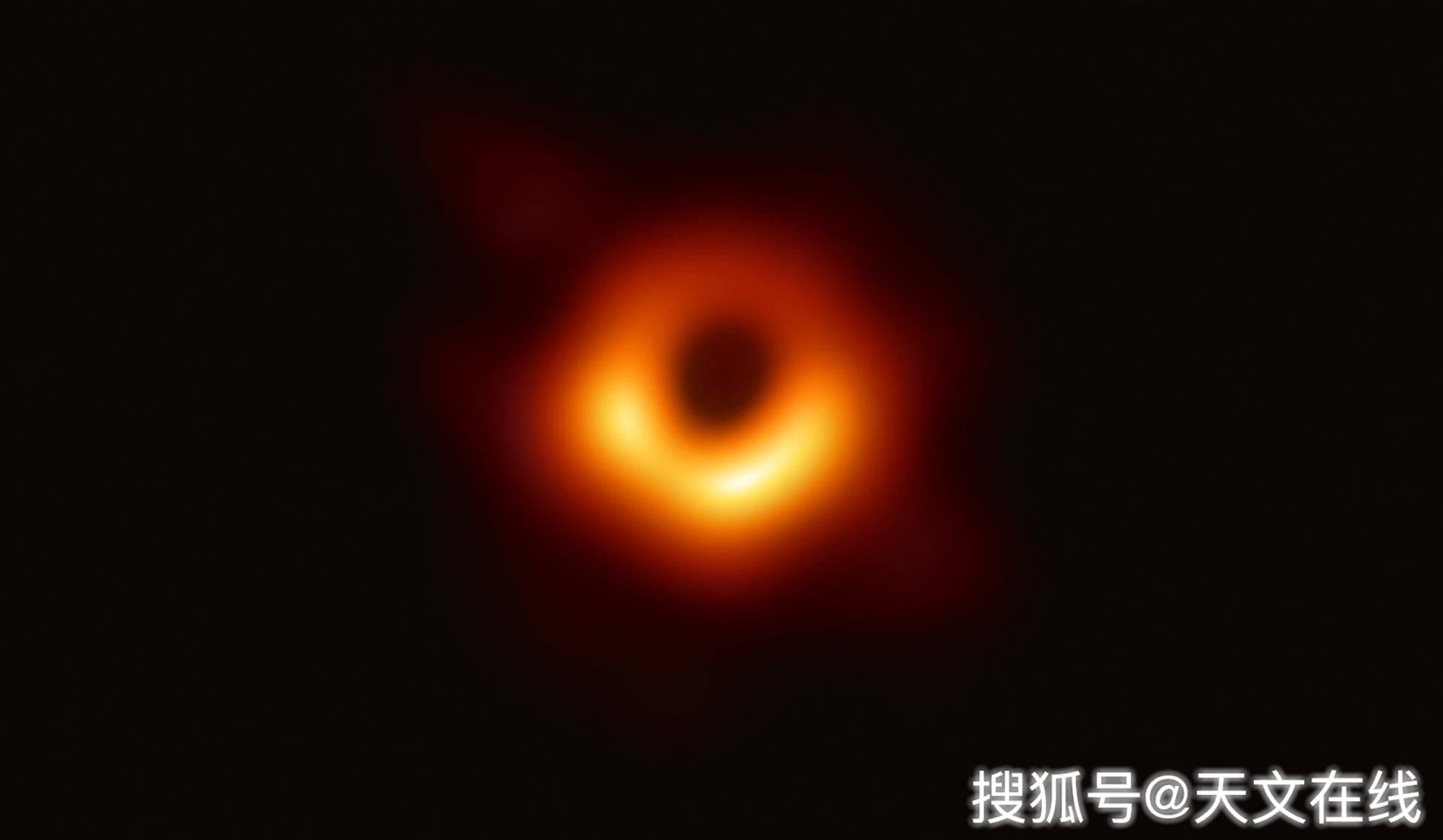 圖解:位于M87中心的超大質量黑洞,推估質量達太陽的數十億倍。這是人類史上第一張直接對黑洞觀測的天文影像,由事件視界望遠鏡所拍攝,發表于2019年4月10日。