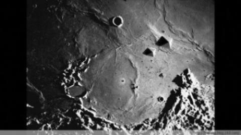 美國人于1966年11月20日發射的“月球軌道環行器”2號,在月球表面上發現了一些像金字塔的建筑物,也有點像華盛頓紀念碑。它們的建筑角度明顯運用了幾何學原理。排列方式與埃及三座大金字塔頂點的排列方式完全一樣。