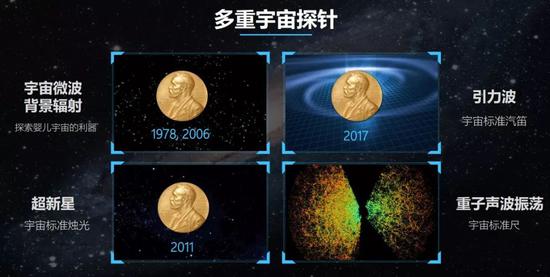 實際上,暗物質、暗能量方面的研究已經獲得了多次諾貝爾獎,CMB研究獲得過兩次,加速膨脹研究2011年獲得諾獎,引力波研究2017年獲得諾獎,還有今年非常重要的Peebles的研究也獲得了諾獎,他建立了一整套宇宙引力學的框架,如果沒有他,我們今天的宇宙學研究是很難展開的,他的工作奠定了基礎。
