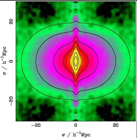這張圖展示了另外一個非常重要的效應,叫做紅移畸變,它對于我們來說是一個信號。