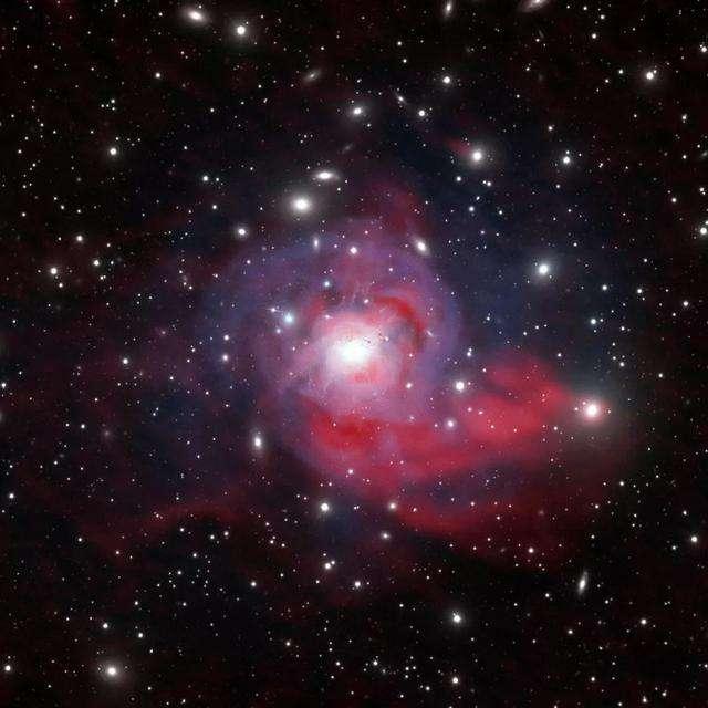 這份研究提供的圖片上可以看到,這些較“年輕”的球狀星團與復雜細絲網狀結構的冷氣體有著密切的聯系。研究人員由此推斷這些星團是在延伸到巨型星系外圍的冷氣體中誕生。