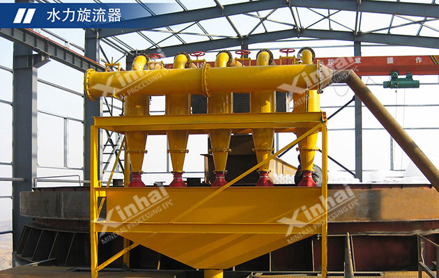 水力旋流器主要有圓柱體、錐體、溢流口、底流口與進料口組成。水力旋流器對尾礦進行濃縮脫水、分選富集等作業,工藝簡單、效率高、投資低。在尾礦干排工藝流程中,尾礦漿分級采用水力旋流器可有效提高沉砂產率,提高分級效率,保證沉砂濃度。