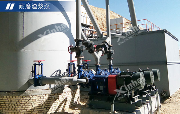 尾礦干排工藝流程中,渣漿泵是一種必不可少的尾礦礦漿輸送設備,其作用是把礦漿運送至水力旋流器和廂式壓濾機中。渣漿泵內襯采用耐磨橡膠,不僅增強了自身的耐磨性能,而且保證了旋流器組和壓濾機處于良好的工作狀態,延長渣漿泵使用壽命。