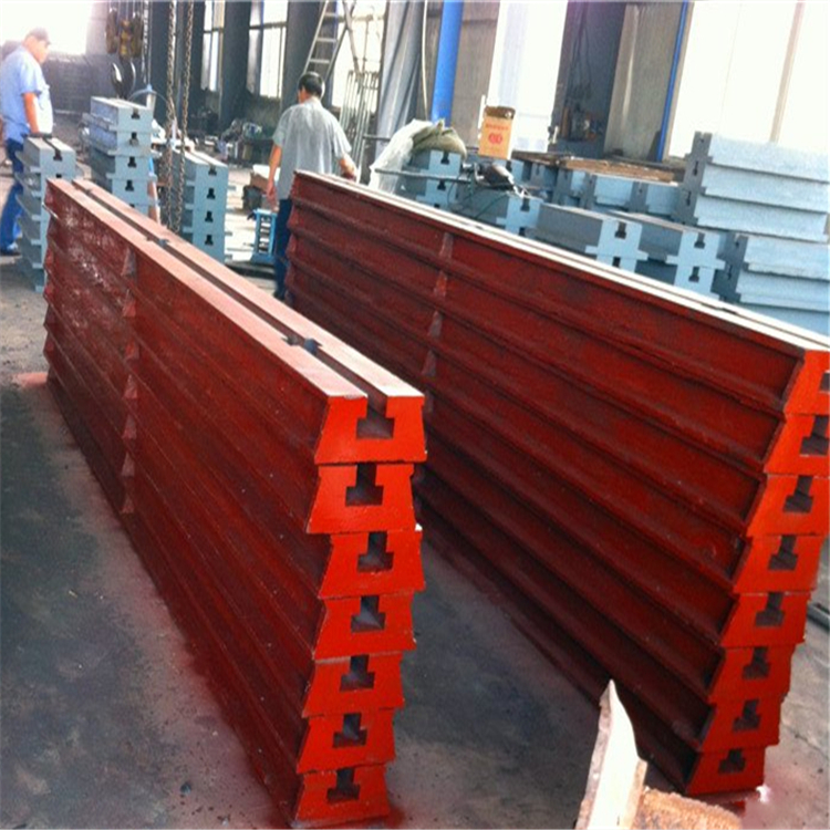 3、鑄鐵地軌安裝時將鑄鐵地軌的各個支撐點用調整墊鐵墊好、墊實,由專業技術人員將鑄鐵地軌調整至合格精度。