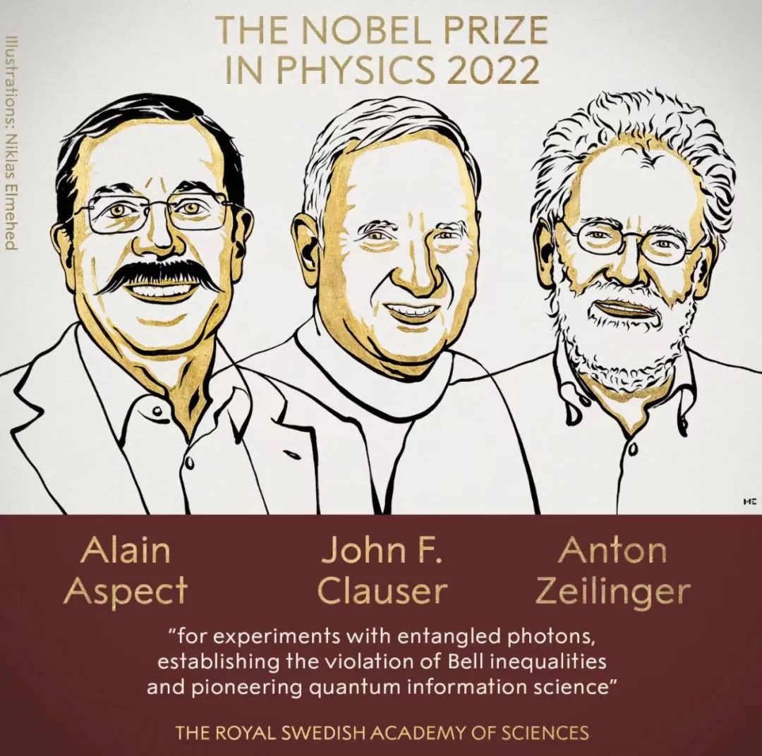 北京時間10月4日17:45,在瑞典首都斯德哥爾摩,瑞典皇家科學院宣布,將2022年諾貝爾物理學獎授予法國物理學家阿蘭·阿斯佩(Alain Aspect)、美國理論和實驗物理學家約翰·弗朗西斯·克勞澤(John F. Clauser)和奧地利科學家安東·塞林格(Anton Zeilinger),以表彰他們在量子信息科學研究方面作出的貢獻。