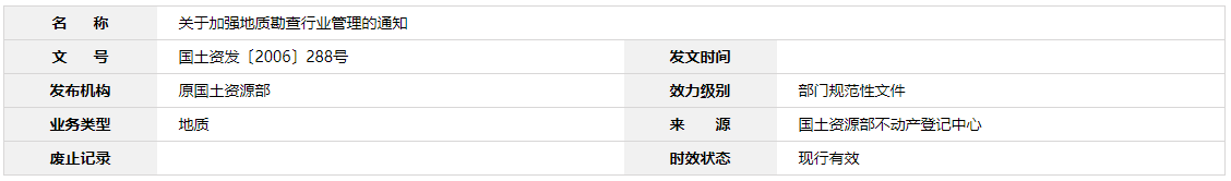 (十七)定期發布地質勘查成果信息通報。要強化對公益性與商業性地質工作成果信息的收集、分析、匯總工作,建立暢通的信息渠道和地質勘查成果信息通報制度。自二○○七年起,各省(區、市)每年第一季度要發布本地區上一年度地質勘查成果信息通報,并按統一要求報送國土資源部。國土資源部匯總發布全國地質勘查成果信息通報。