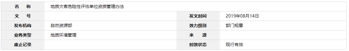 (2005年5月20日國土資源部令第29號公布根據2015年5月6日國土資源部第2次部務會議《國土資源部關于修改〈地質災害危險性評估單位資質管理辦法〉等5部規章的決定》第一次修正根據2019年7月16日自然資源部第2次部務會議《自然資源部關于第一批廢止和修改的部門規章的決定》第二次修正)