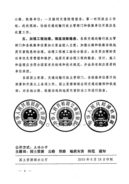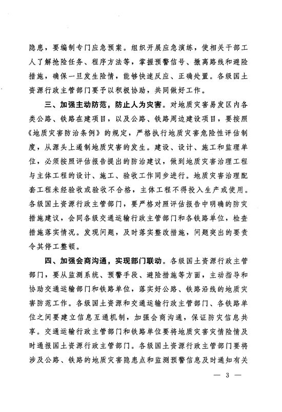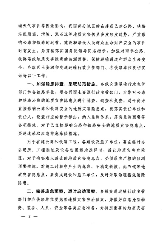 國土資源部交通運輸部鐵道部關于加強公路 和鐵路沿線地質災害防范工作的通知