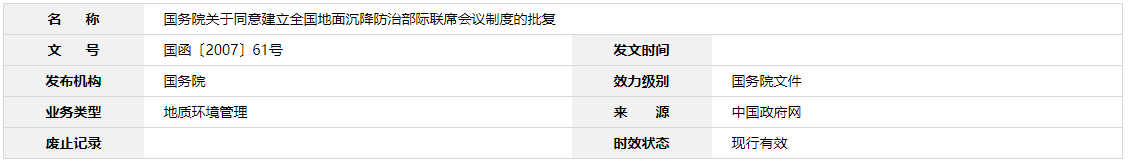 同意建立由國土資源部牽頭的全國地面沉降防治部際聯席會議制度。聯席會議不刻制印章,不正式行文,請按照國務院有關文件精神認真組織開展工作。