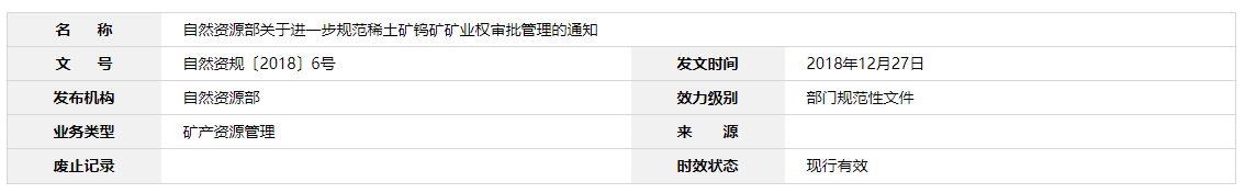 稀土礦、鎢礦是國務院規定實行保護性開采的特定礦種。為保護和合理開發利用優勢礦產資源,深入貫徹落實黨中央、國務院決策部署,進一步規范和加強稀土礦、鎢礦勘查開采審批管理,根據礦產資源法律法規及國務院有關規定,現就有關事項通知如下: